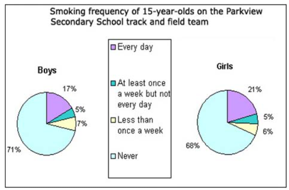 The Graph shows the information on smoking frequently seen among athletes of Parkview secondary school. Summarize the information by selecting and reporting the main features, and make comparisons where relevant. You should write at least 150 words.